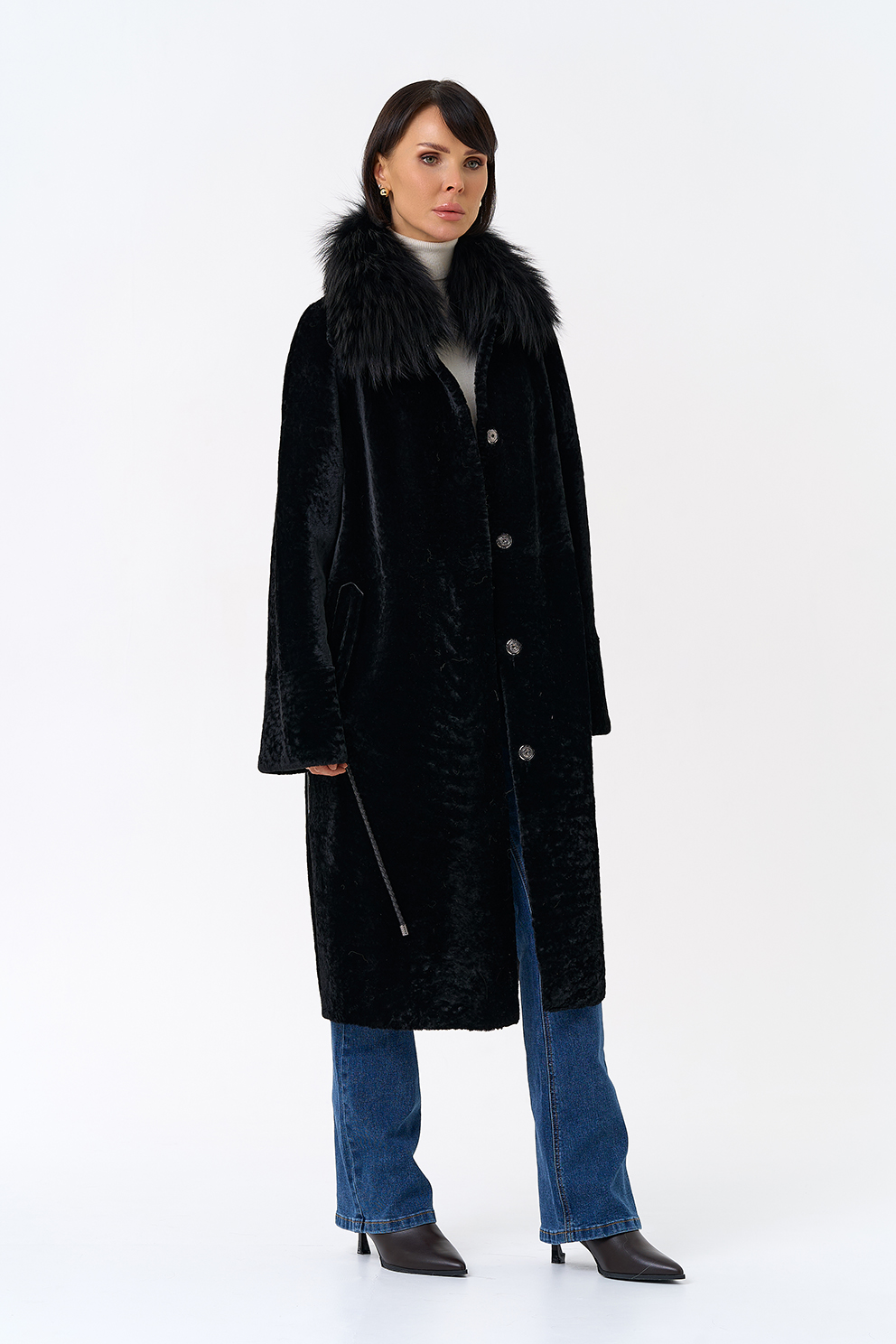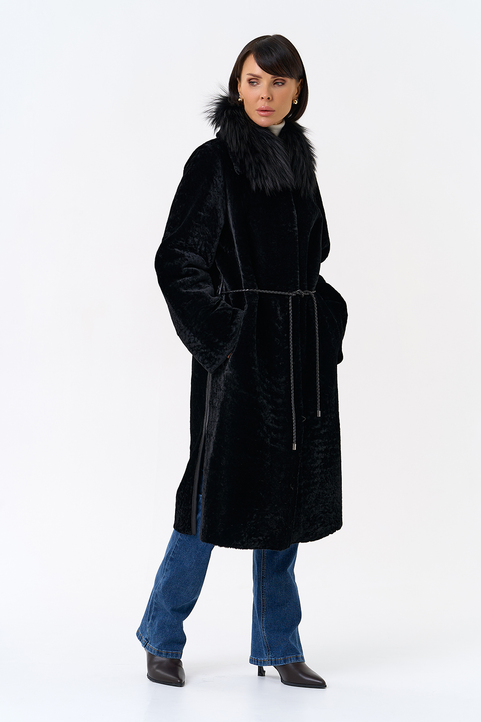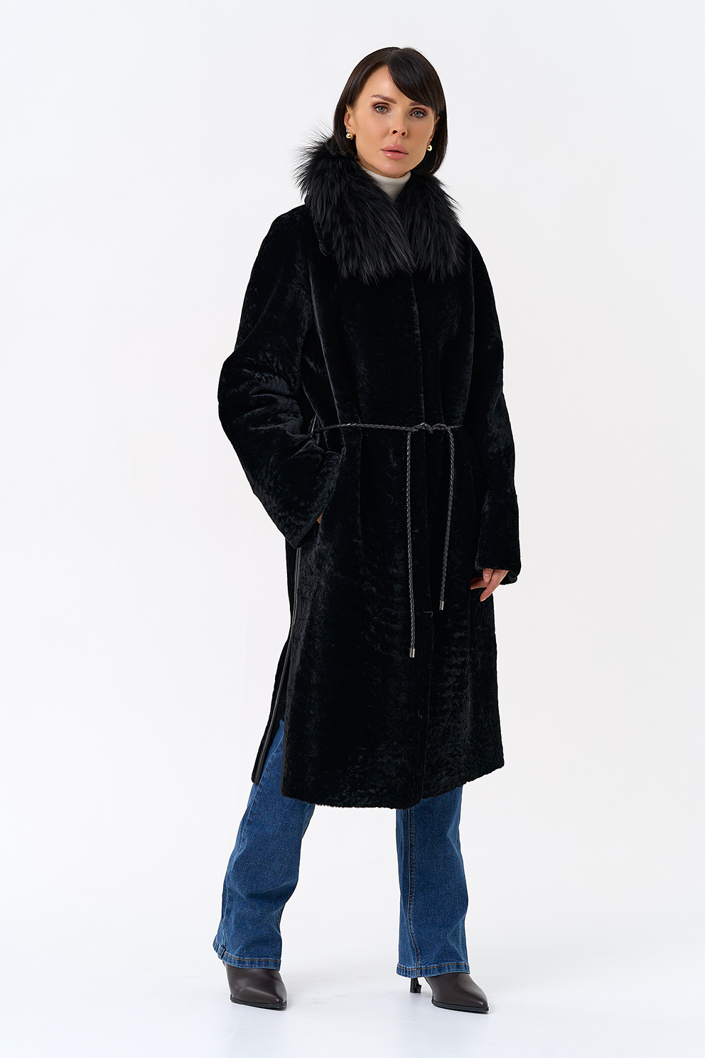 Вид ворота - отложной, отделка чернобурая лиса