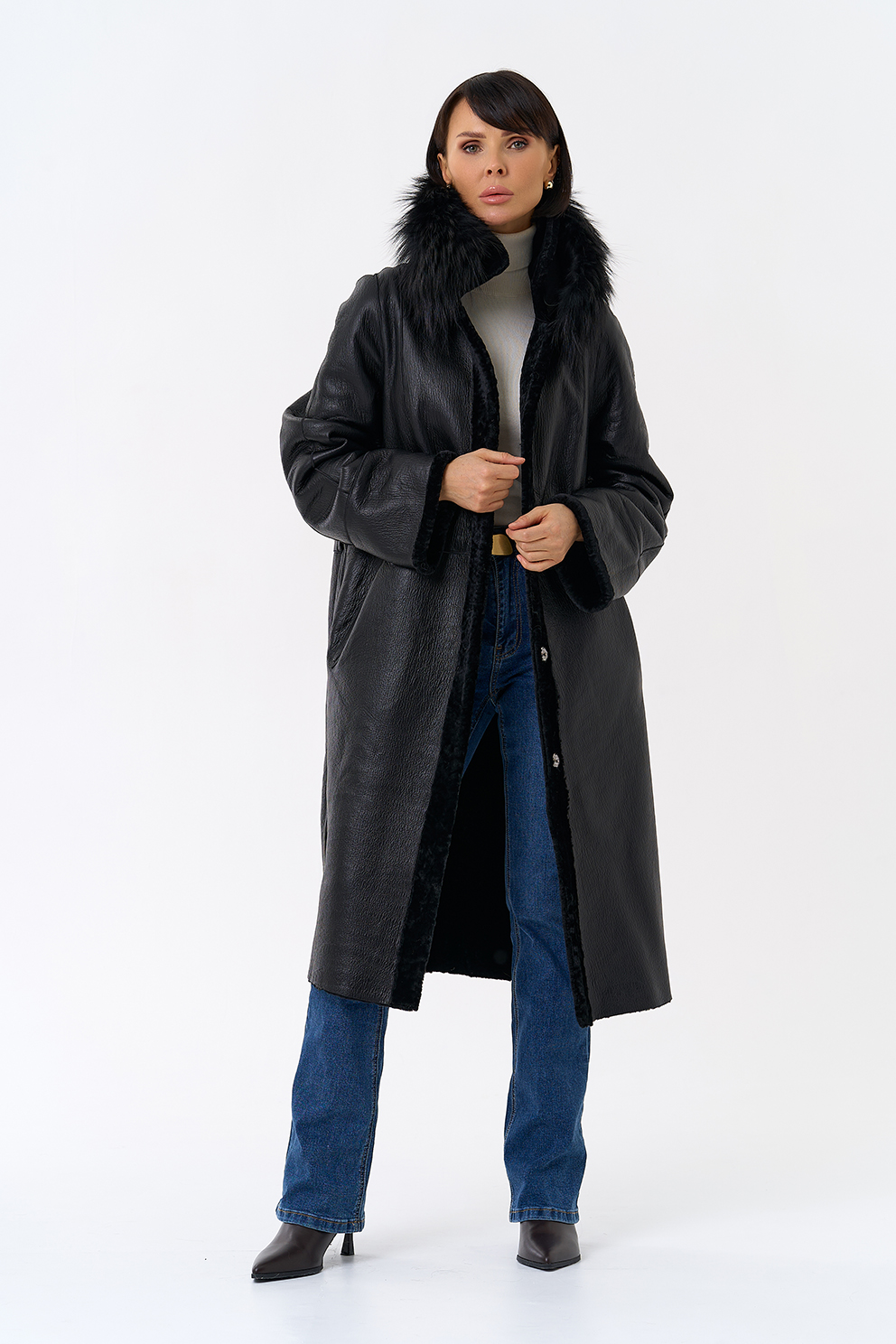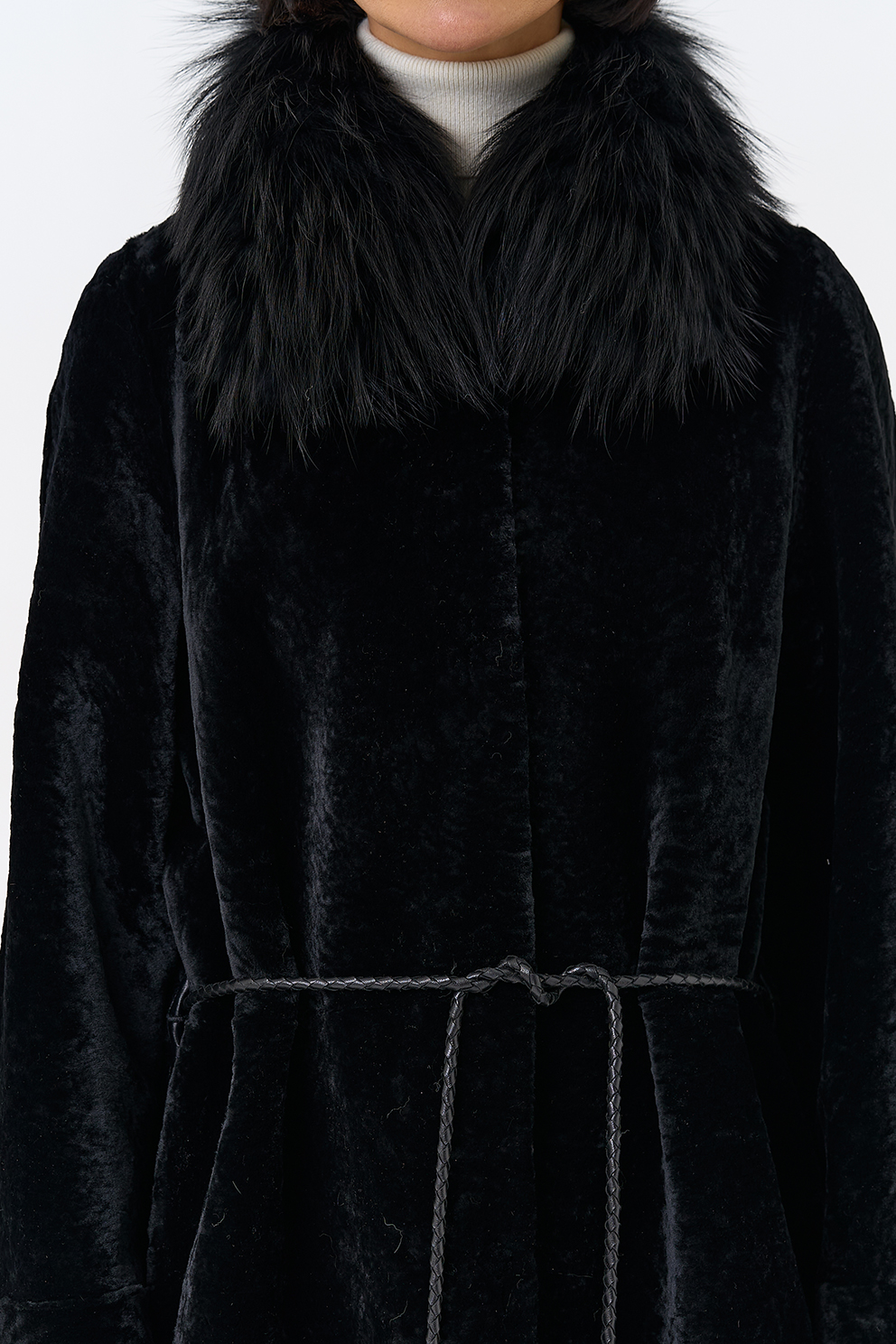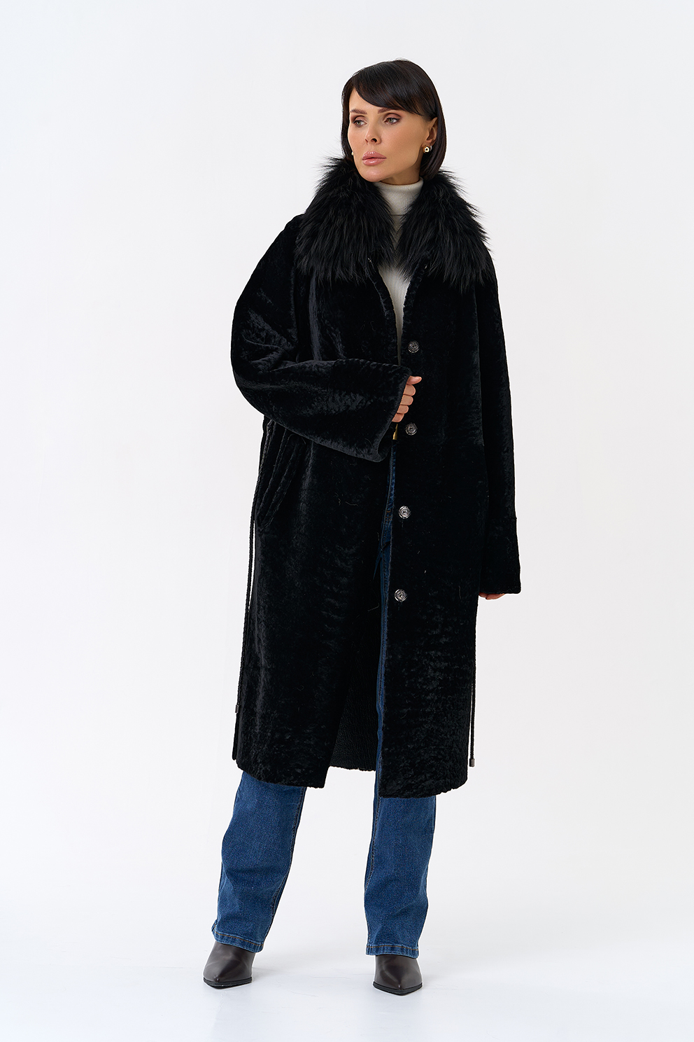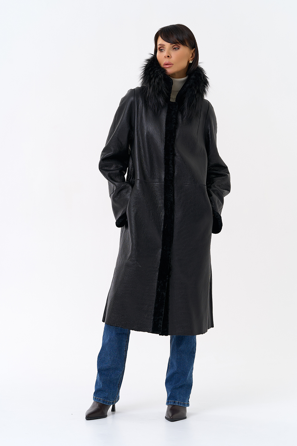 Вид ворота - отложной, отделка чернобурая лиса