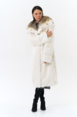 Модель украшает капюшон с отделкой из меха рыси. Мех норки черного цвета